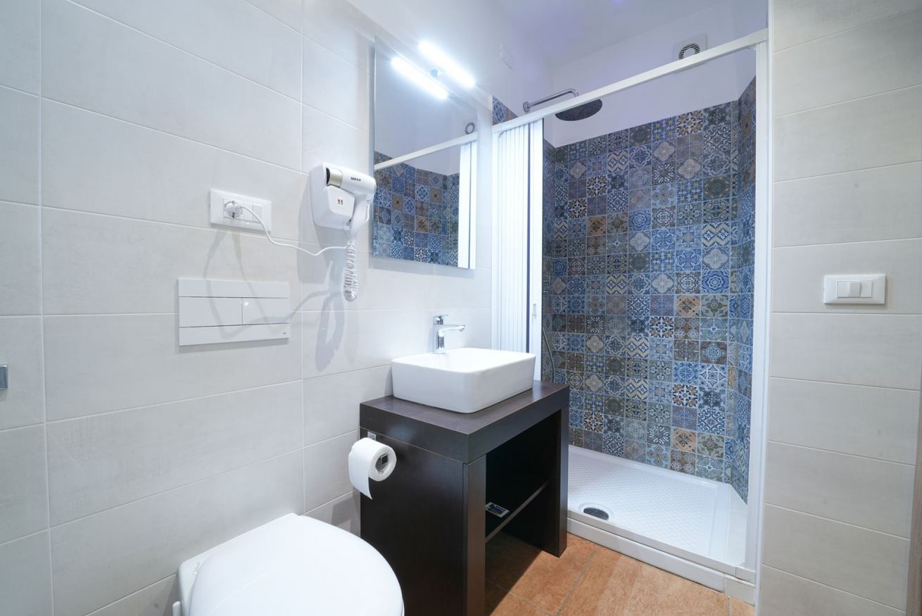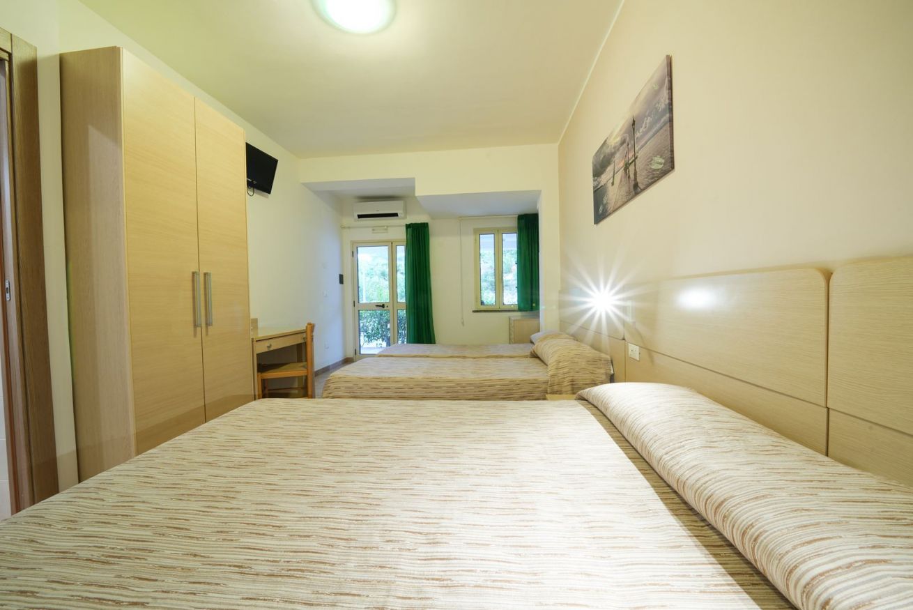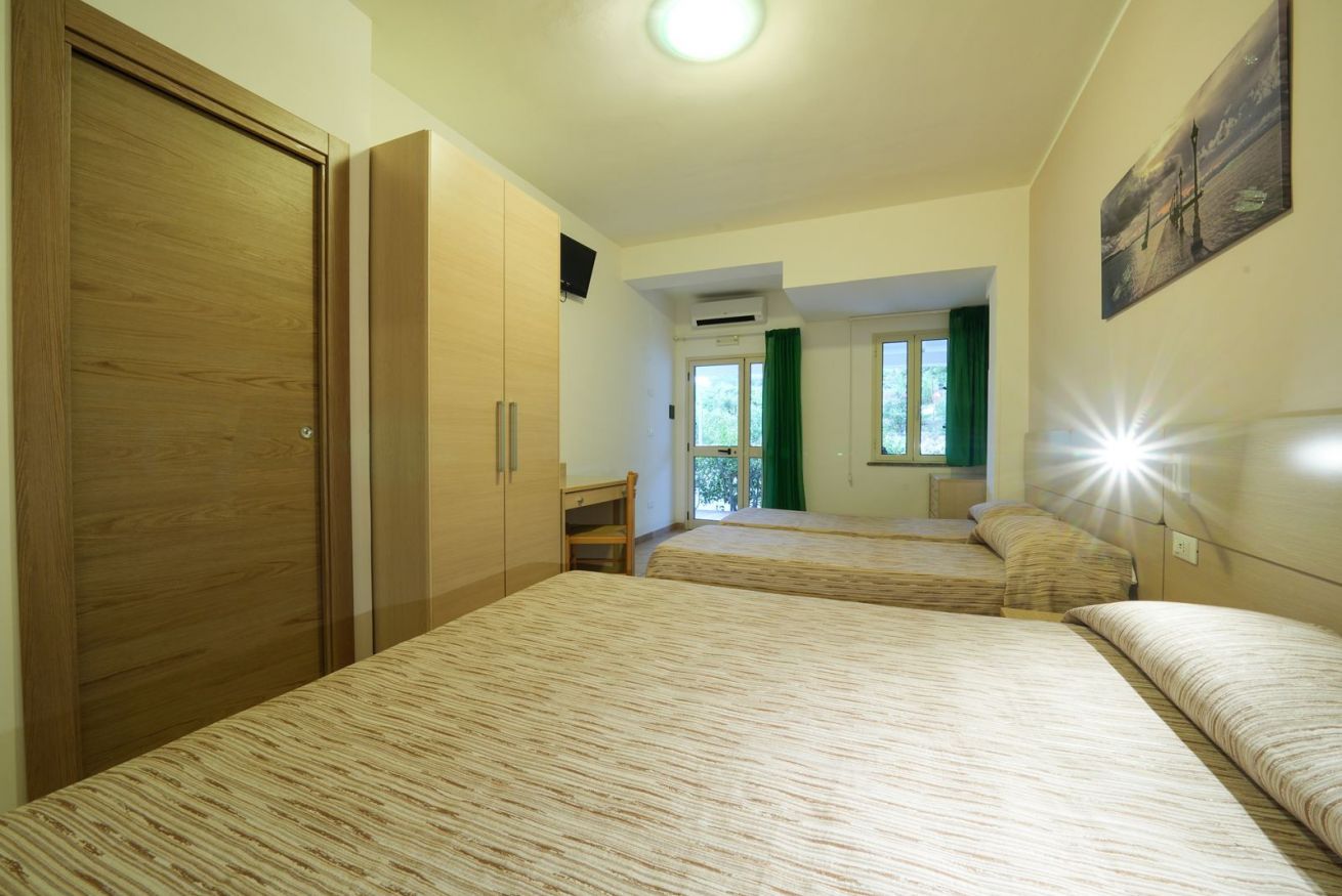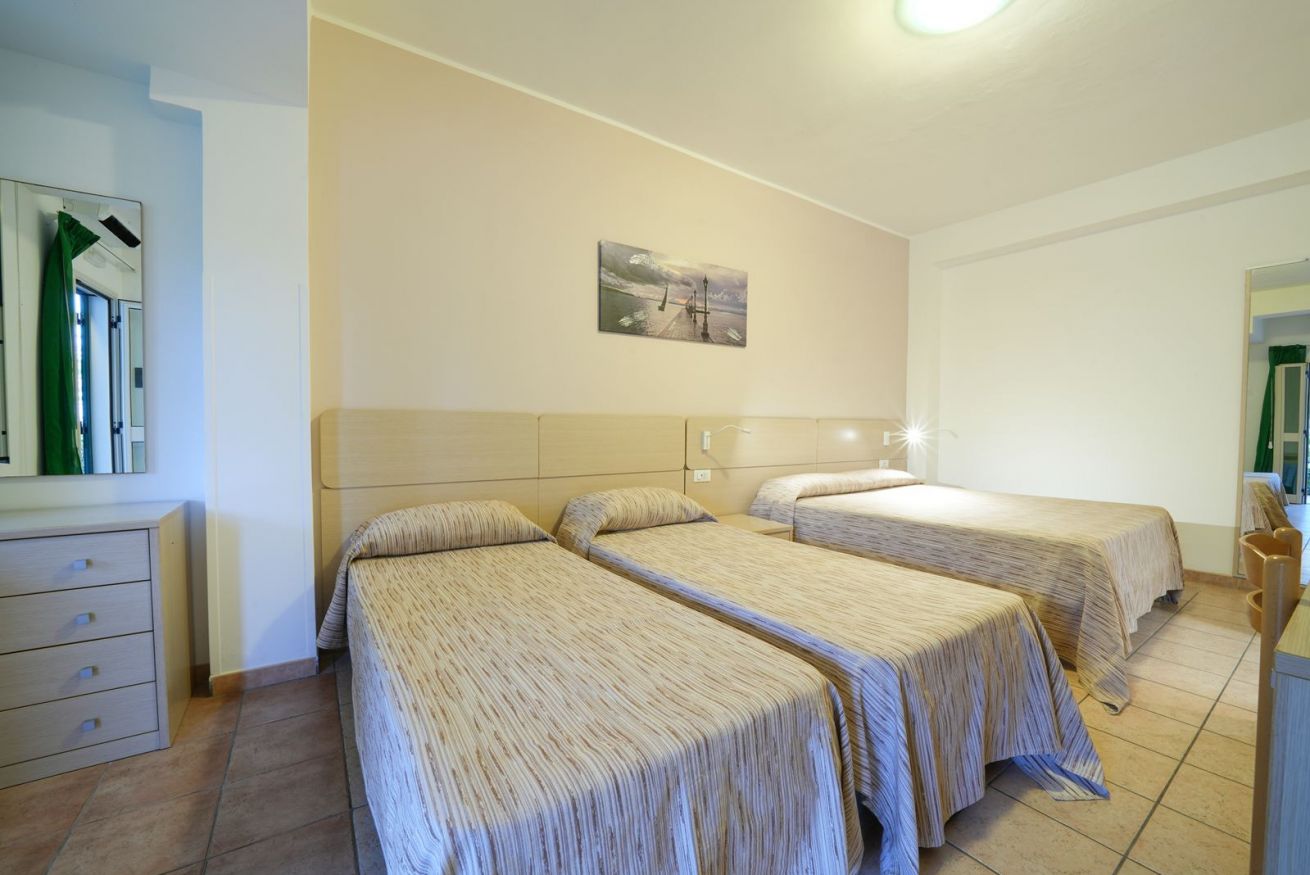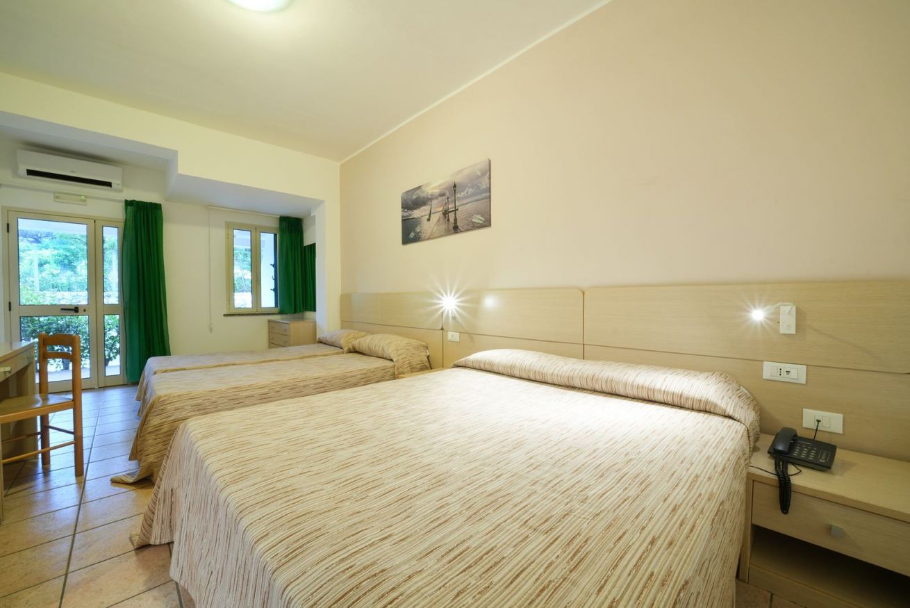 Camera Quadrupla con bagno privato dotata di aria condizionata, tv, wifi, telefono interno, phon, frigo vuoto, cassaforte, balcone o terrazzino.